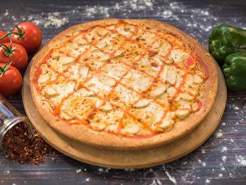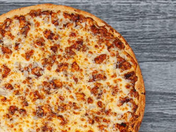 Regular Crust, Side Marinara, Cheese Blend, Bbq Sauce and Chopped Chicken.