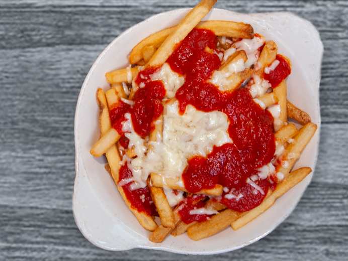 Fresh Mozarella, Basil, Tomato, Olive Oil, Oregano, Salt & Pepper and Waffle Fries.