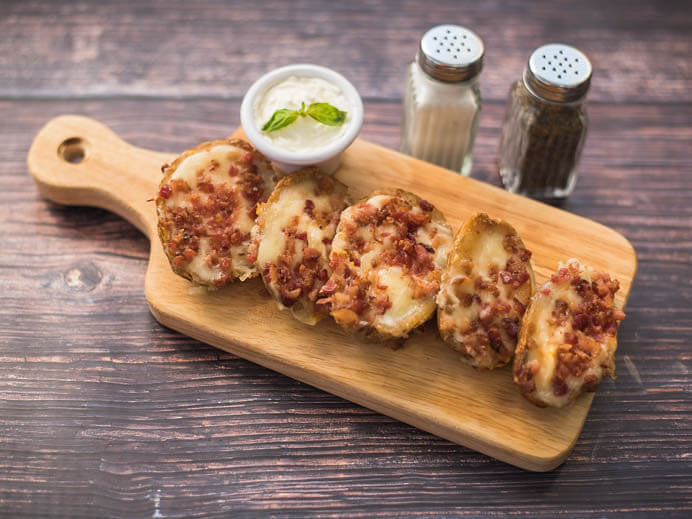 Ranch, Mozzarella Cheese, Cheddar Cheese and Bacon Bits.