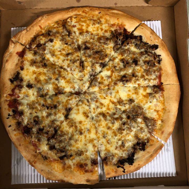 Regular Crust, Pizza Sauce, Extra Pizza Cheese, Sausage, Meatballs, Pepperoni, Mushrooms, Sweet Peppers and Black Olives.