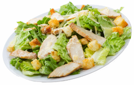 Chicken, Romaine Lettuce and Caesar Dressing.