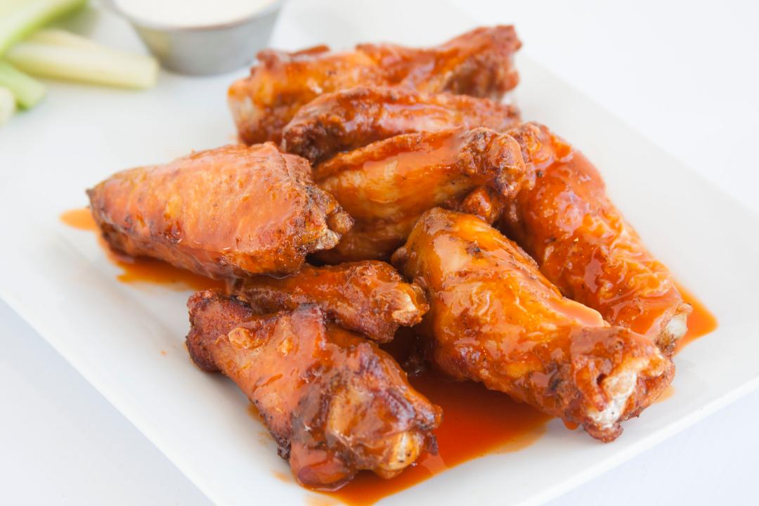 Lettuce, Tomato, Romaine Lettuce, Red onions, Hot Sauce and Blue Cheese.